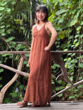麻100%の軽くて氣持ちいいガーゼ生地での三つ編みノースリーブロングワンピースです。