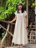 胸元に通した三つ編みのヘンプ紐でギャザーを寄せるときれいなドレープが生まれ、ハイウエストで脚長効果も☆