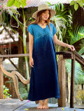 落ち感のあるヘンプ生地でシンプルに仕立てたロングワンピースの草木染めグラーデーションです。