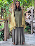 人気の ヘンプコットン ロング フレアー スカートの手刷り麻柄プリントです。