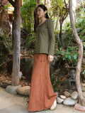 | 製品名 | asana ヘンプコットン 薄手 ふんわり 麻柄プリント 紐付き ロングスカート |