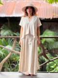 ナチュラルな質感のHEMP100%生地をななめにたっぷり使ったスカートです。