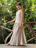 ヘンプ100%厚手生地にオリジナル麻柄プリントをして、Aラインポケット付きスカートの草木染めを作りました。