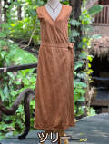 ヘンプコットン ノースリーブ カシュクール ロングワンピースの草木染め