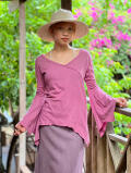 ひらっと広がる袖とカシュクール風のVネックが女性らしさ抜群♡