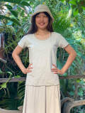 | 製品名 | asana ヘンプコットン 厚手 麻柄プリント スリムTee |