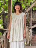 麻100%のガーゼ生地をたっぷり使った、ノースリーブブラウスです。