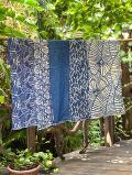 ヘンプ100%生地のインディゴ抜染プリント手ぬぐい