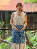 抜染した薄手のヘンプガーゼ生地で作った腰巻きエプロンです。
