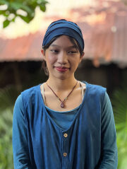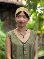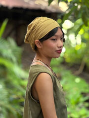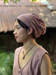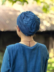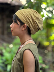 からだにやさしいヘンプコットン素材で作ったターバンキャップの草木染めです。