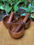 しっかり厚みのある木製のすり鉢で、スパイスや木の実をコツコツ叩いて砕く時も安定感があります。
