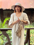 ストラップつきのヘンプ手編みポーチ