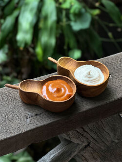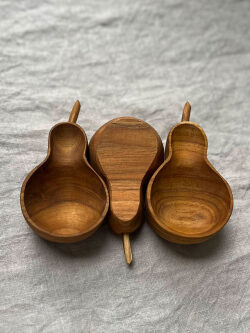 水に強いチークウッドで作ったお皿です。
