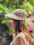 ヘンプ100%のナチュラルな糸で編んだつばが広めのキャップ