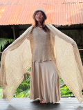 時間をかけてヘンプ糸で手編みされた細長のショール