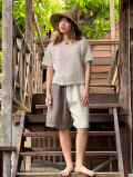 ヘンプ100%の手織り布を組み合わせて、ざっくりしたハーフパンツに仕上げました。