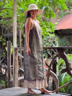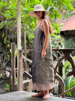 | 製品名 | Karma HEMP100% 手織り ノースリーブ ワンピース・草木染めグラデーション |