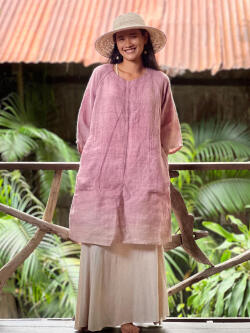 やさしいロータス色で、裾と袖先はほんのり薄い色に仕上がっています。