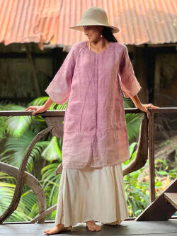 | 製品名 | Karma HEMP100% 手織り ロングスリーブ ワンピース・草木染め |