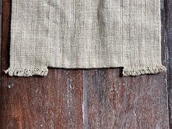 使い込むほどに味わい深くなる手織りのヘンプ布で作られ、短めに揃えられた裾のフリンジがかわいいポイントです。