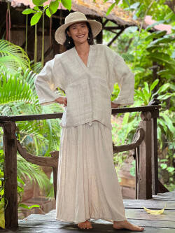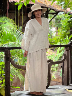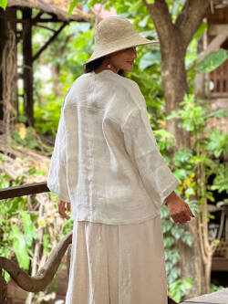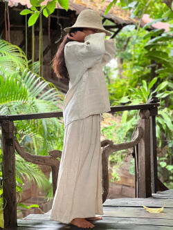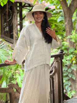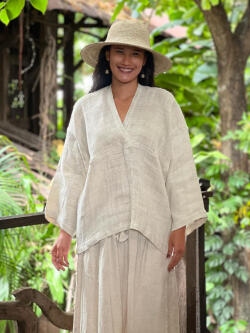 ナチュラルな手織りのヘンプ生地で作ったきなりのトップス