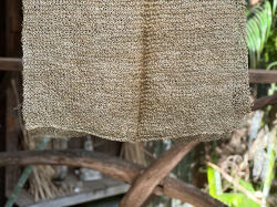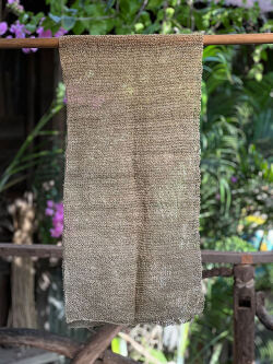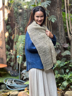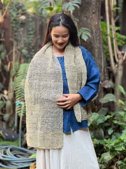 きなりのヘンプ糸を太めの針でゆったりと編んで作ったショールです。