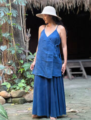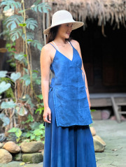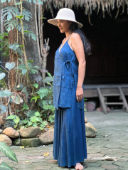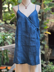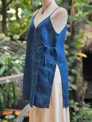 | 製品名 | Karma HEMP100% 手織り カシュクール ノースリーブ ジャケット・草木染め/インディゴ |
