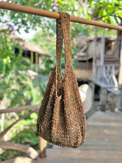 ワイルドなヘンプ糸でざっくり編んでつくったショルダーバッグ
