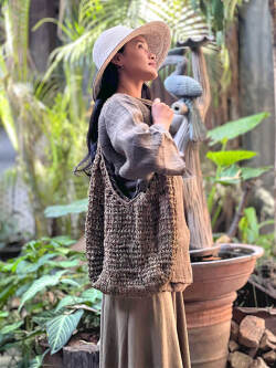 手織りのコットンやヘンプを使って活動している、タイの作家カップルのブランドKarmaの作品です。