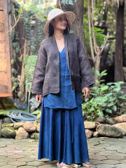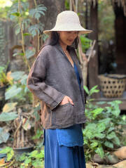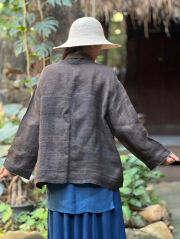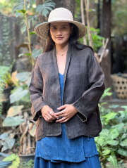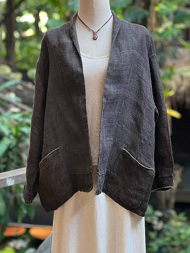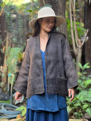 手織りのヘンプ生地で作ったゆったりジャケットの草木染め