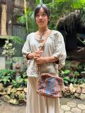 ラオス、ビエンチャンのマーケットで見つけた一点ものの手織り生地の2wayバックです。