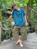 HEMP100%の厚手生地で作った丈夫で肌触りの良いやわらかな8分丈ゆったりパンツ