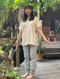 ヘンプコットン麻柄手刷りプリントのステテコパンツ