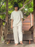 トップスの端切れパッチワークTシャツとも組み合わせて、お家でリラックスしてはいかがですか。