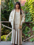 極細のタイ産ヘンプ糸を高温処理し、色を白に近いきなり色にして、機械織りしているため、とても柔らかく、ヘンプのシャリ感も保ちつつ、肌触りの氣持ちいい生地です。とても薄いので、きなり色は少し透ける感じです。