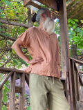 麻100%ガーゼゆったりフリンジネックシャツの草木染め
