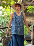 | 製品名 | asana HEMP100% ガーゼ ポケットタンク・インディゴ抜染プリント |