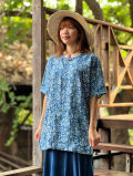 | 製品名 | asana HEMP100% ガーゼ ボタン 半袖 シャツ・インディゴ抜染プリント |