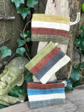 草木染めされた麻生地のパッチワークが素敵なポーチです。