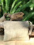 ざっくりしたヘンプ生地と、ヘンプ糸の手編み部分の組み合わせがちょうどいいバランスのポーチです。