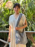 インディゴ染めの布地に、ふんだんに施した麻柄の刺し子が存在感たっぷりのショルダーバッグです。