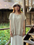ざっくり厚みのあるHEMP100%の生地で、アクセントに手刺繍のラインステッチを入れたトップスです。