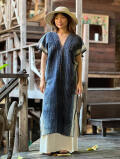 インディゴのヘンプ生地で作ったロング丈の貫頭衣