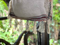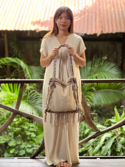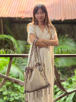 三つ編みのストラップとフリンジがかわいいヘンプのショルダーバッグ