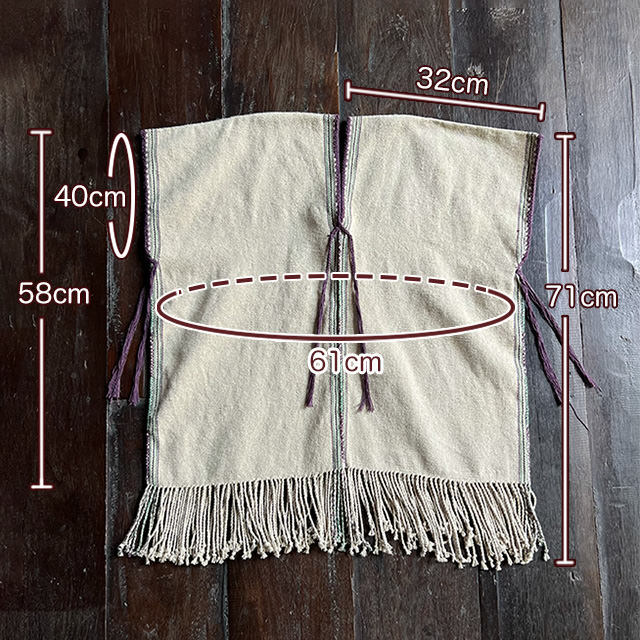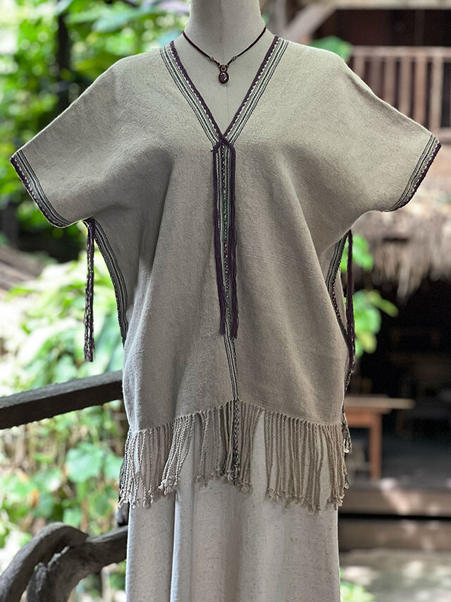 | 製品名 | HEMP100% 手縫い カレン族 フリンジ 貫頭衣 |