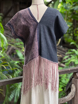 バティック染めの手織りヘンプ生地で作った貫頭衣