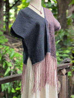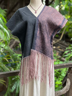 ざっくりした手織りのヘンプ生地の無地とバティック染めの2枚を縫い合わせた貫頭衣です。