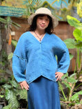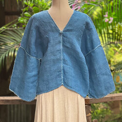 こちらはもとの織が硬めで、水と軽石を使って何度か洗って柔らかくしたヘンプ100%の生地を使って作られています。