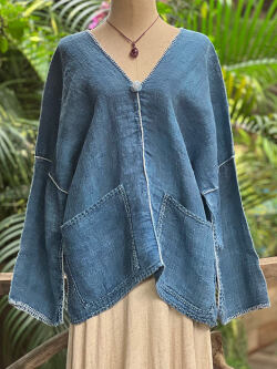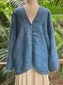 こちらはもとの織が硬めで、水と軽石を使って何度か洗って柔らかくしたヘンプ100%の生地を使って作られています。
