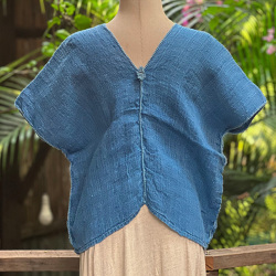 こちらはもとの織が硬めで、水と軽石を使って何度か洗って柔らかくしたヘンプ100%の生地を使って作られています。